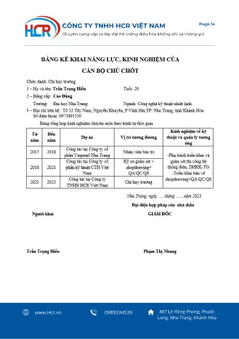CÔNG TY TNHH HCR VIỆT NAM Page 14